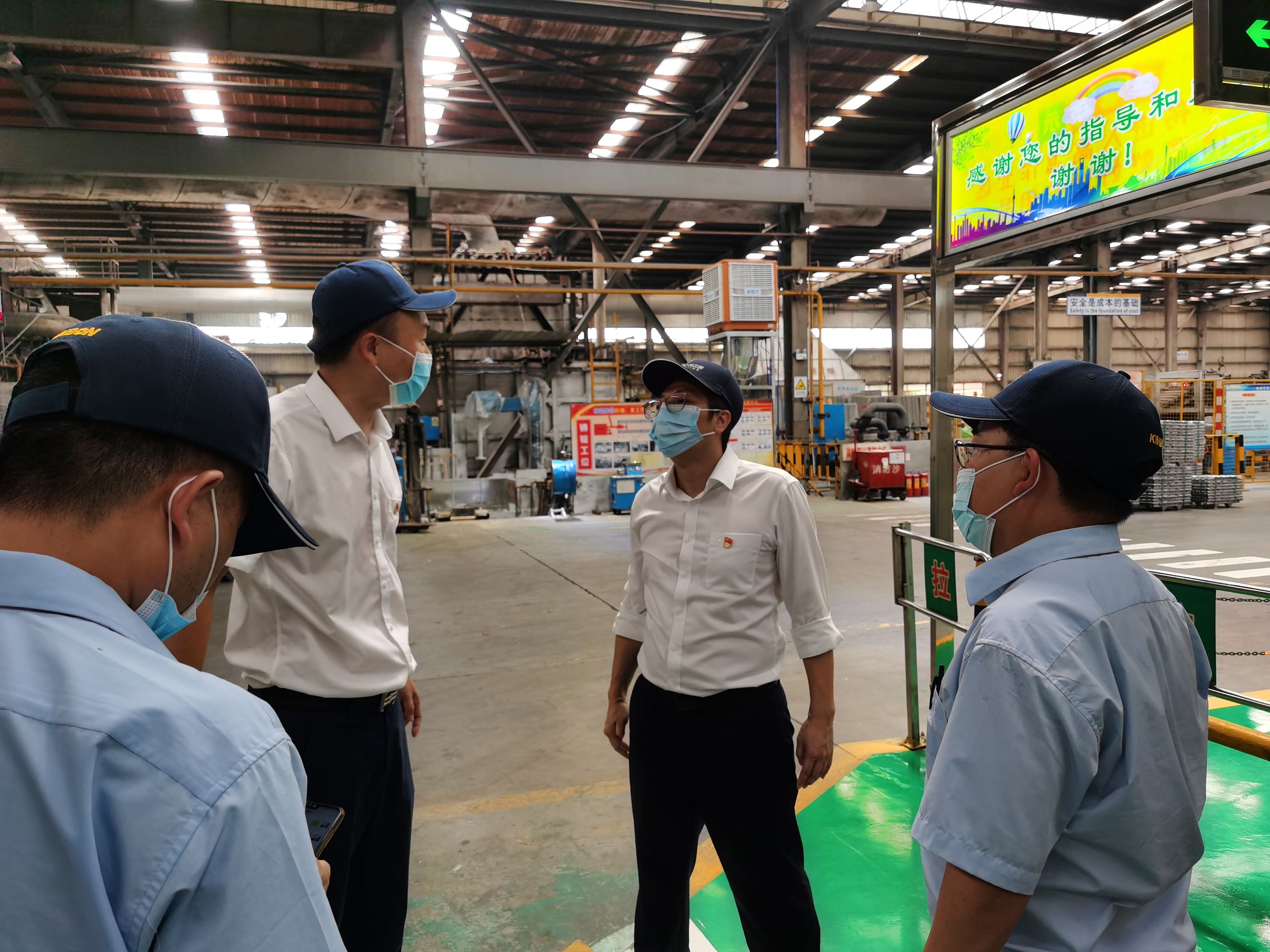2021年2月23日上午,廣州工控集團總經理助理兼副總工程師、有色金屬事業部部長黎繼榮帶隊到鴻邦公司現場檢查安全生產工作。廣州金邦液態模鍛技術有限公司董事長兼總經理劉新營、廣東鴻邦金屬鋁業有限公司董事長文歡以及公司安全管理員等人陪同檢查工作。